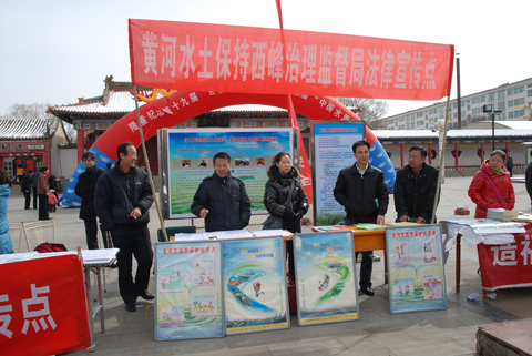 西峰治理监督局还以此次活动为契机,印发了《中华人民共和国水土保持法》、《中华人民共和国水法》、《水土流失治理形势紧迫》、《新水土保持法凸显四大亮点》及《全民携手共建秀美山川》等单行宣传材料、制作大型彩色宣传展版、张贴宣传标语和宣传彩画1600余份,向社会各界发放。