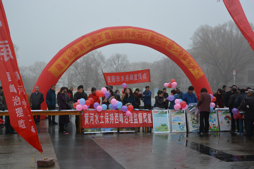 3月22日,西峰局和庆阳市水务局、西峰区水务局等单位联合在西峰东湖公园门前组织开展了宣传活动。在广场搭建拱门、悬挂横、条幅,展示图版,设立咨询点,营造了浓厚的宣传氛围,进行了隆重的宣传纪念活动。宣传活动采取了发放宣传资料及节水纸杯、毛巾、小气球等小纪念品相结合的方式,增加了宣传活动的吸引力和趣味性,现场市民热情高涨,踊跃参与。活动共计发放宣传单4000余份,展示展板6个,发放宣传画15套,中国水利报《世界水日·中国水日》特刊200份。接待咨询群众1000余人次,邀请庆阳电视台对宣传活动进行了现场采访,并在《庆阳新闻》中进行了专题报道,扩大了宣传效果。