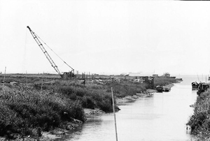 | 因围垦建筑,深圳河西堤海堤线向迎水面延伸了约1-2千米 |