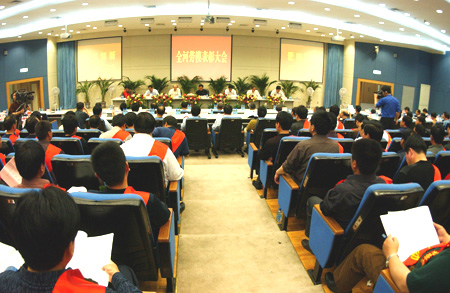 会上,共有来自全河上下的103名治黄劳动模范和45个治黄先进集体在这里受到了隆重表彰,黄委领导为他们颁发了荣誉奖章(牌)。山东槐荫河务局局长张清田、山西河务局局长赵海祥等6人分别代表劳动模范和先进集体作了先进事迹介绍。受到表彰的劳模代表还在会上向全河职工发出了为维持黄河健康生命而奋斗的倡议。