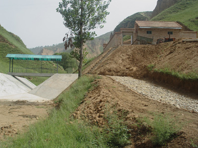2004年,我局以“三条黄河”建设为指导,紧密结合当前“模型黄河”及“模型黄土高原”建设的实际,根据黄委会批复的《典型小流域水土流失原型观测初步设计》和水土流失观测的需要,恢复了董庄沟径流测站。其设站目的是作为非治理沟与治理沟杨家沟(生物固沟)进行对比观测,深化研究黄土高原沟壑区未治理典型小流域的水土流失规律和治理沟的水土保持效益,并为建设模型黄土高原提供科学数据。该站于5月4日破土动工,经过将近两个月的艰苦努力,圆满竣工, 8月1日正式启用,进行观测。观测项目有:水位、流量、含沙量、降水量、蒸发量、径流场、土壤含水率及被复度等。
