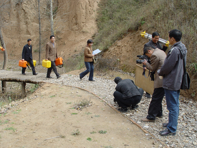 10月22日,《黄河水土保持生态环境监测系统》(暂名)专题片拍摄小组一行五人,在黄委会水保局和黄河上中游管理局有关人员的陪同下前来我局进行有关监测资料的拍摄工作。摄制组以南小河沟试验监测站为拍摄重点,详细拍摄了南小河沟小流域径流泥沙的监测工作、“模型黄土高原”人工模拟降雨设施以及巴家嘴水库的运行情况。23日摄制小组赴延安进行有关监测工作的拍摄。以下图片为摄制组活动剪影。