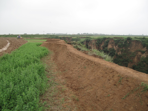 袁主任告诉笔者,1992年的一场大雨,塬水大面积下沟,东嘴队一处沟头前进近8米,宽度达90多米,1亩多塬边地整体被冲陷到沟底。