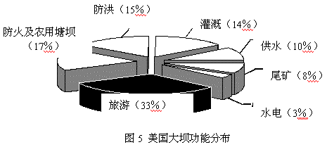 这些大坝的主要功能包括旅游(以33%居首位)、防火及灌溉池、防洪、灌溉、供水、尾矿和水力发电等,其分布比例如图5 所示。
