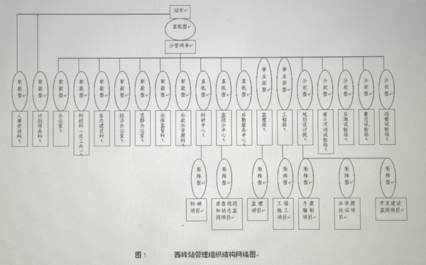 西峰站决策层(站级领导)每个领导分管着2~5个单位或部门,管理层19个单位或部门分别分管着2~18名职工,5个单位和部门负责人还分管着水土保持科研、原型观测和水土保持动态监测、水土保持监理、工程施工、水保方案编制、水资源论证、开发建设项目监测等7类项目。管理幅度比较适合西峰站实际需要。