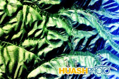 空中俯视黄土高原沟壑交错(西宁南部上空)