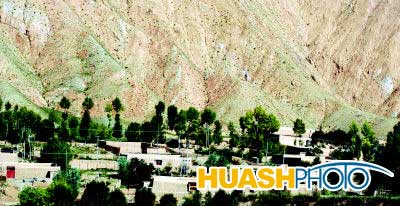 青海省贵德县境内不毛之地的山丘与川道上的村庄形成了对比