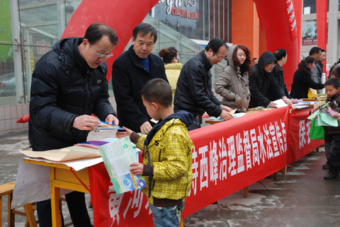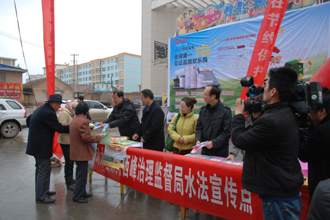 二是组织宣传小分队深入社区、单位和学校,通过设置宣传展板,张贴宣传画,散发宣传资料等形式,继续开展水利政策法规进社区、进学校和进单位主题宣传活动。共散发《黄河水利委员会行政执法项目及依据和黄河防汛抗旱总指挥部行政强制项目及依据(第一批)》、《水法》、《水土保持法》、《节水型社会建设》等宣传材料3000余份(册),派发印有节约水、保护水和珍惜水宣传标语(警示语)的纸杯、大小学生本子等纪念品10000余个(本),不仅深受广大职工干部、社区群众和学生们的喜欢和欢迎,而且有助于进一步培养和提高中小学生的水法制、水忧患意识,促使广大青少年自觉做《水法》的宣传者和维护者,并通过“小手拉大手”的方式,影响和带动身边人加入到保护和节约水资源的行列中来。